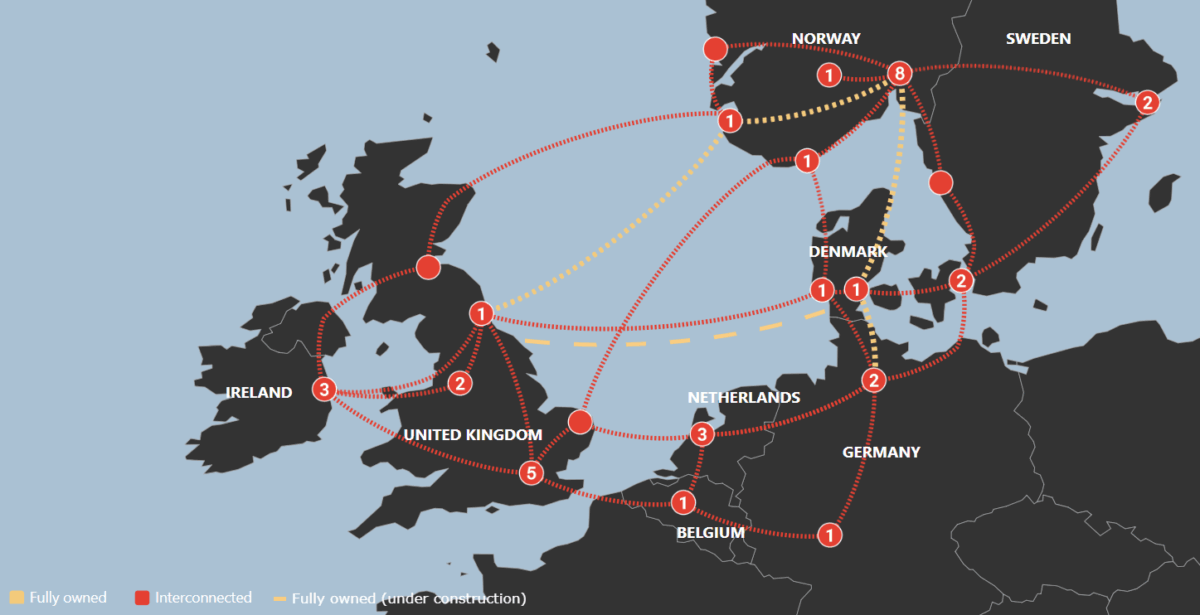 Two submarine cables deliver route diversity and resiliency from Stavanger to Newcastle and Larvik to Hamburg.